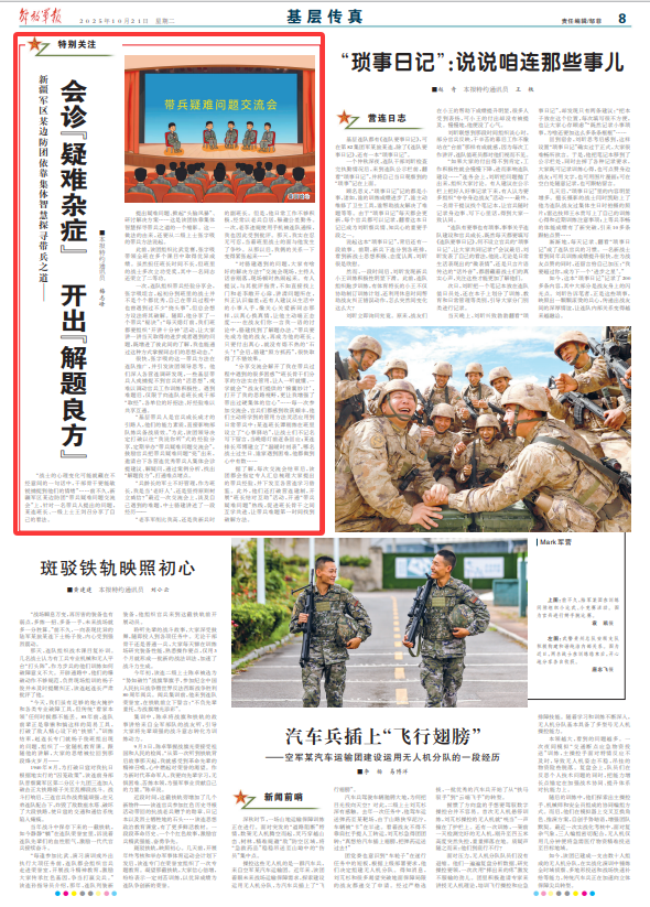 “战士的心理变化可能就藏在不经意间的一句话中,干部骨干要能敏锐捕捉到他们的情绪”……前不久,新疆军区某边防团“带兵疑难问题交流会”上,针对一名带兵人提出的问题,某连班长、一级上士王剑召分享了自己的看法。
