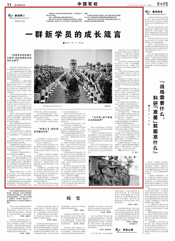 新学员黄宇恒是一个“摄影发烧友”,高中时期的作品屡见各大媒体平台。来到学院后,他充分发挥特长,为战友们记录下每一个成长瞬间。
