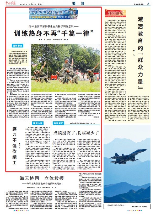 如今,热身放松已成为连队训练的“必修课”,20分钟的热身放松时间雷打不动。更可喜的是,连队训练骨干不再依赖经验粗放式组训,而是通过聆听专家授课、学习运动学知识等方式,掌握了不少科学热身放松的方法。