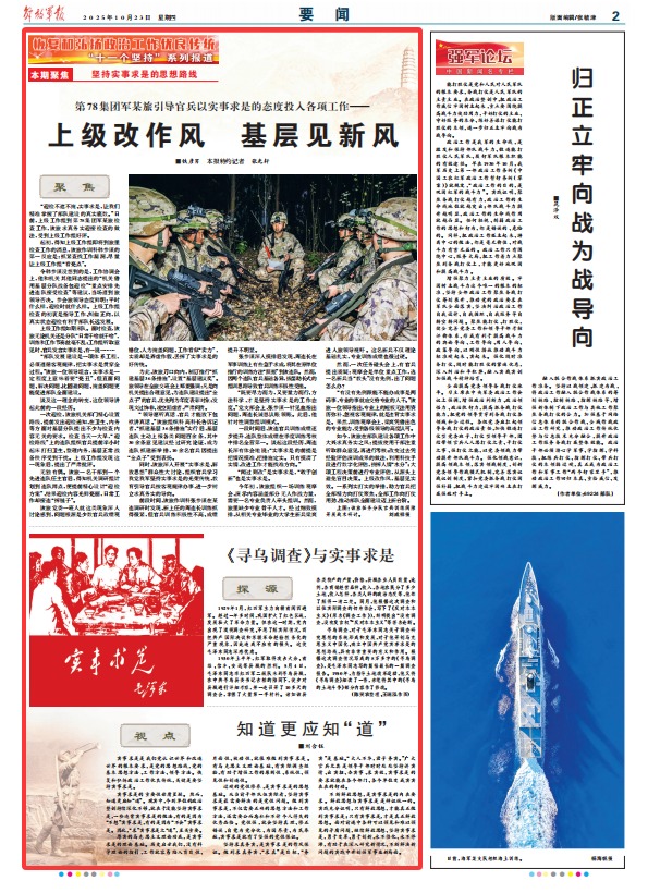 该旅党委一班人就这类现象深入讨论感到,问题根源是少数官兵政绩观错位,人为掩盖问题,工作看似“卖力”,实质却是弄虚作假,丢掉了实事求是的好传统。