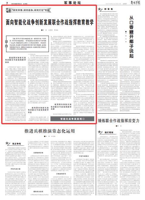 从军事视角回答“智能时代、教育何为”这一课题,关键在于不断提升教育教学内容与智能化战争的适配度,着眼“智能化战争+智慧教育”双重变革驱动,全面塑造以智能辅助决策能力建构为引领的联合作战指挥教育教学体系。