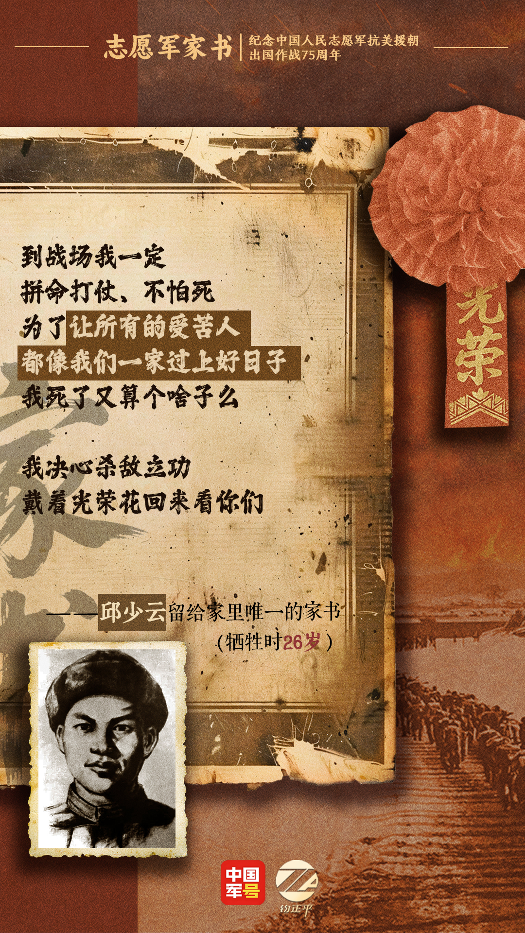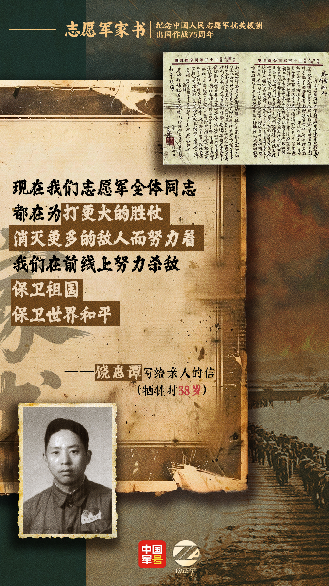 钧正平:今天是中国人民志愿军抗美援朝出国作战75周年纪念日,重温烽火家书,铭记英雄事迹