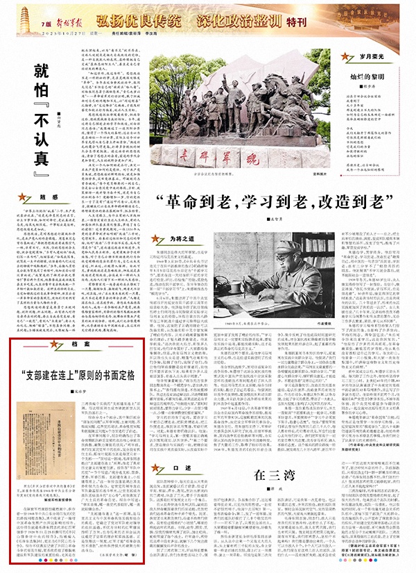 在解放军档案馆馆藏档案中,保存着一份1945年中共山东分局印发的《党的路线问题选集》,其中收录了一篇对中国革命发展产生深远影响的报告。这份报告就是毛泽东同志代表红四军前委于1928年11月25日撰写的《井冈山前委对中央的报告》,后被编入《毛泽东选集》时,更名为《井冈山的斗争》。报告不仅真实记录了井冈山革命斗争的艰苦历程,更系统总结了根据地建设和军队建设的重要经验,尤其是在三湾改编中实践的“支部建在连上”原则。而这项原则也成为铸就新型人民军队的基石之一。
