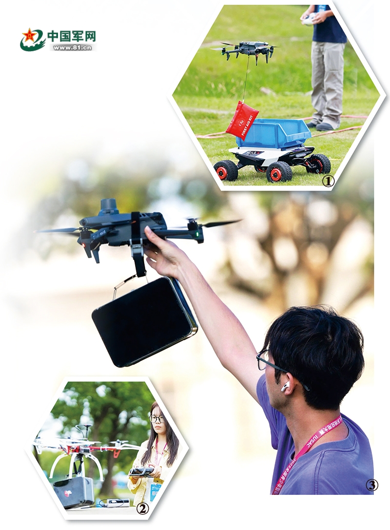 图①至③:参赛选手在比赛中操控智能无人设备,完成指定任务。
