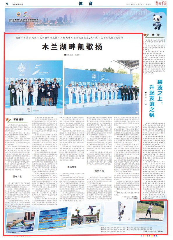 国际军体第54届海军五项世锦赛在海军工程大学木兰湖校区落幕,我军海军五项队包揽6枚金牌——