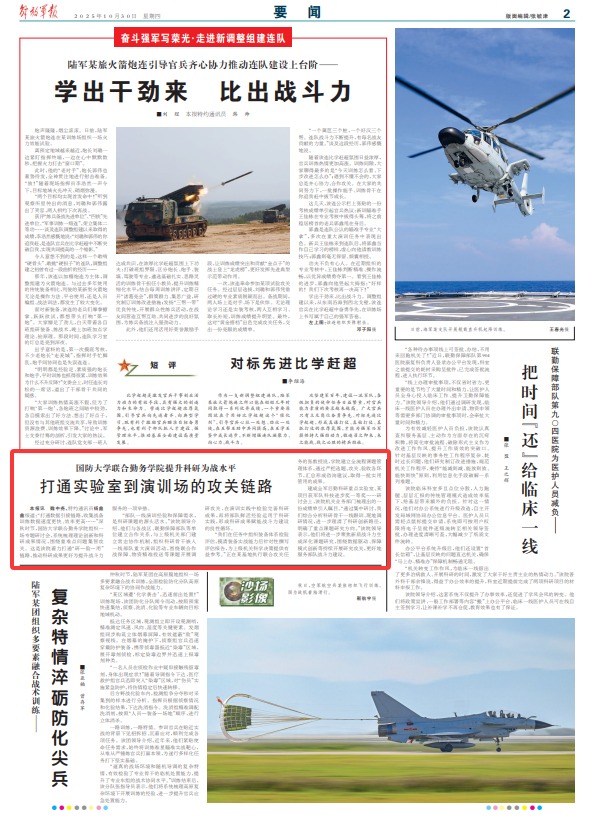 “我们在任务中组织装备体系检验评估,摸清装备实战能力后针对性撰写评估报告,为上级机关科学决策提供有益参考。”正在某基地执行联合攻关任务的张教授说,学院建立全流程课题管理体系,通过严把选题、攻关、验收各环节,汇总形成咨询建议,取得一批实用管用的成果。