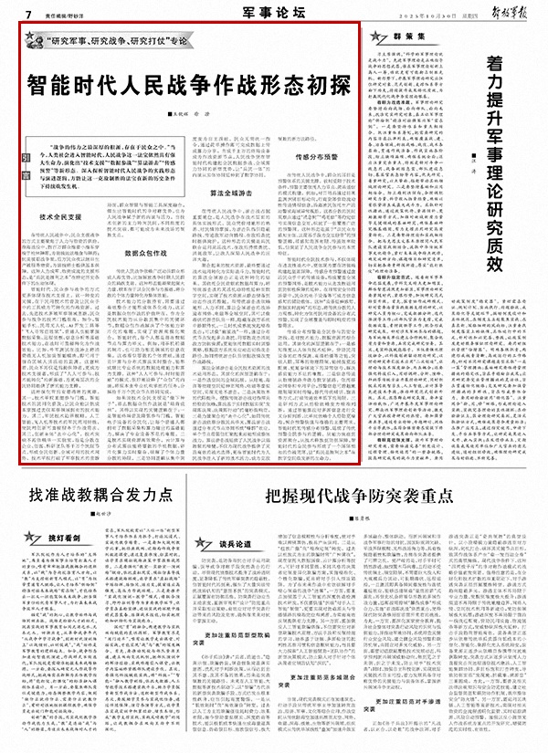 “战争的伟力之最深厚的根源,存在于民众之中。”当今,人类社会进入智能时代,人民战争这一法宝依然具有强大生命力,演化出“技术支援”“数据参战”“算法游击”“传感预警”等新形态。深入探析智能时代人民战争的实践形态与演进逻辑,方能让这一克敌制胜的法宝在新的历史条件下持续焕发生机。
