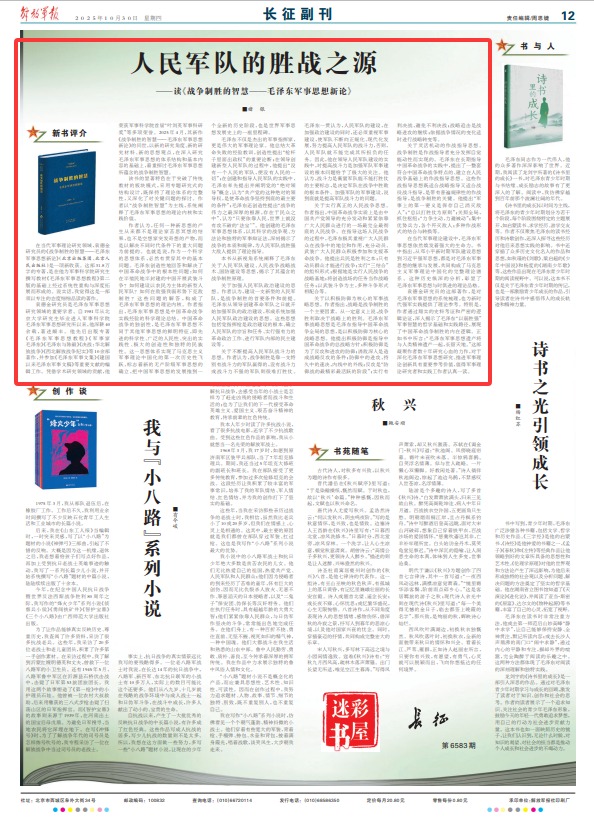 袁德金研究员的这部著作,是对毛泽东军事思想的系统梳理,也为新时代强军实践提供了理论参考。特别是,作者通过翔实的史料考证和严密的逻辑论证,深入揭示了毛泽东“以弱胜强”军事智慧的哲学基础和实践路径,展现了中国革命战争制胜的内在逻辑。正如书中所言:“毛泽东军事思想遗产将与人类精神遗产一起,长留天地。”这部凝聚作者数十年研究心血的力作,对于深化毛泽东军事思想研究、推进军事理论创新具有重要参考价值,值得军事理论研究者和实践工作者认真一读。