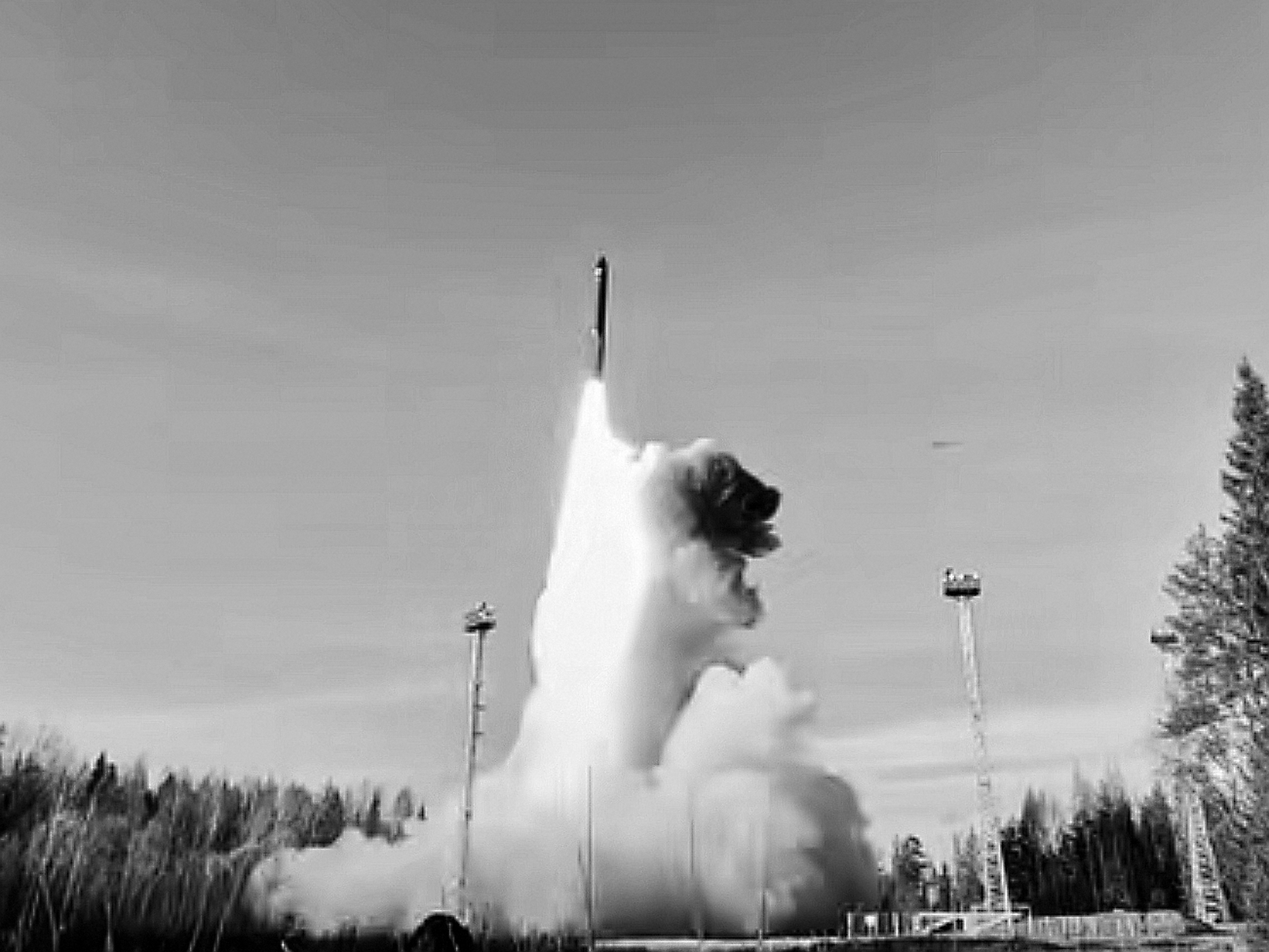 俄罗斯在战略核力量综合演习中发射“亚尔斯”洲际弹道导弹。资料图片