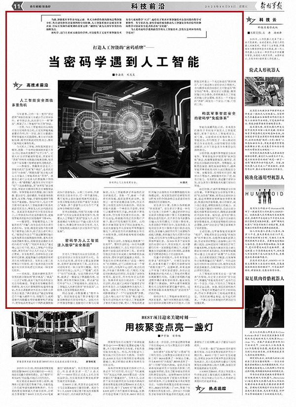 密码学,这门古老而又前沿的学科,不仅提供了丈量军事智能技术安全尺度的数学“尺子”,也给出了解决军事智能技术安全问题的数学可解释性。有专家认为,密码学或将成为推动人工智能安全从经验性防御向数学可验证安全范式跃迁的“金钥匙”。