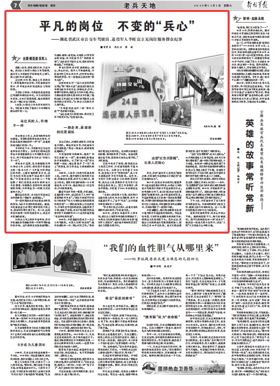 2021年,在武汉市退役军人事务局、武汉公交集团等单位的共同推动下,24路公交线路被创建为武汉市首条“退役军人示范线”,越来越多的市民看到了老兵为民服务的风采。