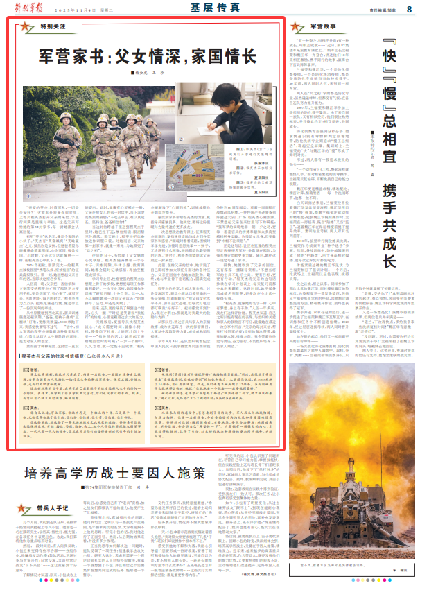 从那以后,讲述官兵与家人的亲情故事,成为该连每月一次的保留课目,大家从中汲取奋进力量,成长成熟悄然提速。