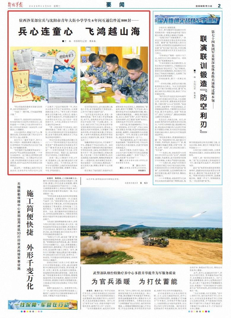 “第一次收到孩子们的来信,我们都特别激动。”该部二级上士周恩仁回忆,学生们寄来的信里不仅有热情的问候,还有可爱的涂鸦、精致的手工作品和沈阳的风景照片。