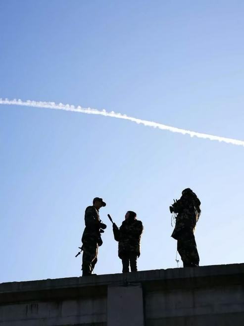 镜头里挡弹板上斑驳的弹痕