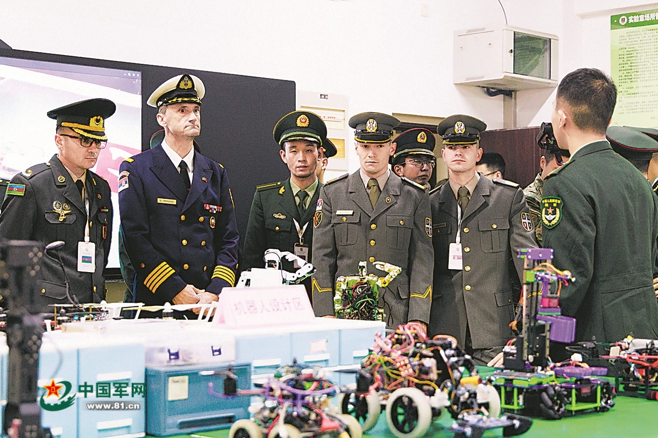 参观活动结束后,不少外军学员意犹未尽,仍在继续交流俱乐部技术创新成果与经验。本届陆军国际学员周以“新域新质力量对未来战争影响”为主题,烽火机器人创新设计俱乐部的创新实践正是这一主题的生动缩影。中外学员们在参观俱乐部的过程中,不仅感受到了技术创新的魅力,还在近距离观摩水下探测、体感格斗等机器人后,深切体会未来智能化后勤保障、无人化作战等新质战斗力的重要性。