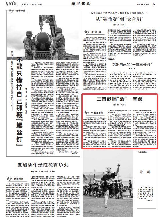 “增强思想政治教育的实效性,必须紧扣官兵活思想。”孙薇说,那次尝试过后,他们结合战士的思想特点和施教者自身实际,探索改进了“军歌+教育”授课模式,深受大家欢迎。