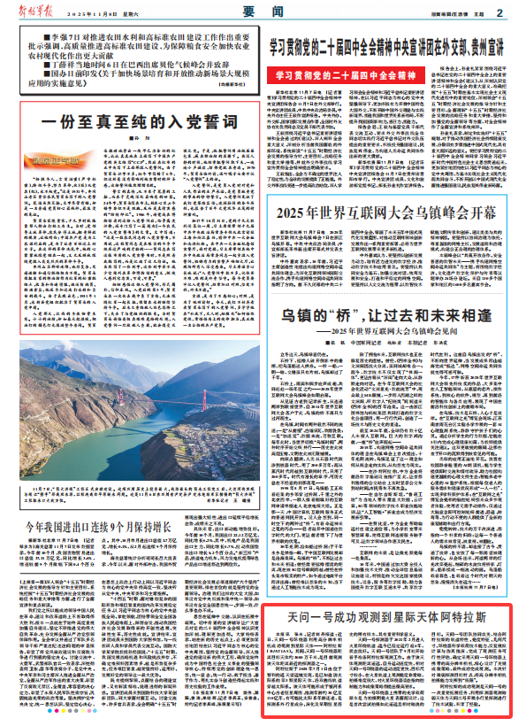 解放军报讯 张未、记者刘丹报道:近日,天问一号环绕器利用高分辨率相机成功观测到星际天体——阿特拉斯(3I/ATLAS)。其间,天问一号环绕器距离目标天体约3000万千米,是目前观测该天体距离最近的探测器之一。