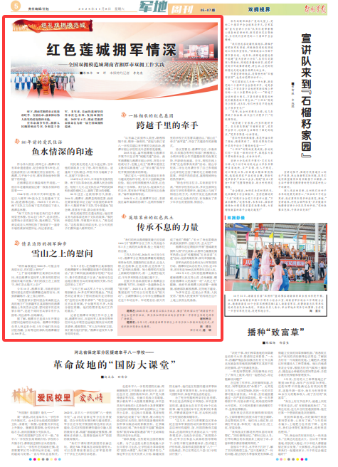 在革命战争年代,湘潭人民踊跃响应号召、争相送子参军。多年来,美丽的莲城坚持传承红色基因,发扬双拥传统。2025年4月,湖南省湘潭市被命名为新一届全国双拥模范城。