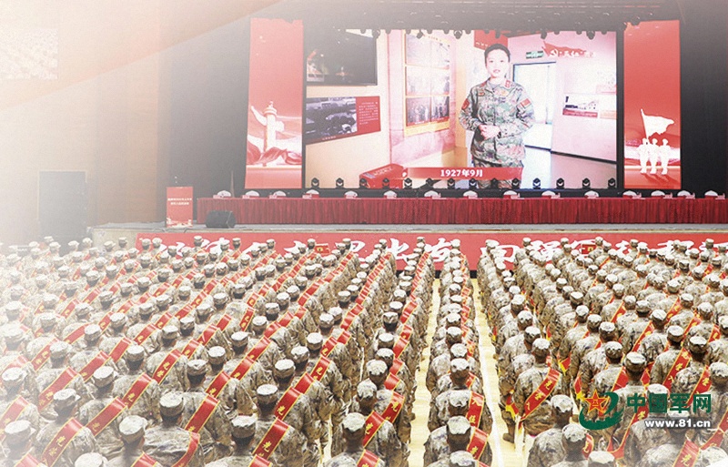 今年3月,湖南省湘潭市举行上半年应征入伍新兵欢送仪式,并组织新兵观看红色微课。田 祥摄