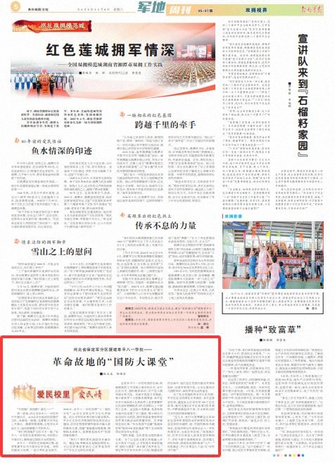 为了充分挖掘利用阜平红色资源,军分区还会同保定市双拥办、阜平县委宣传部,遴选发生在阜平的150个红色故事,编写出版《阜平红故事》校本教材,并聘请离退休干部、官兵和民兵担任学校国防教育辅导员。