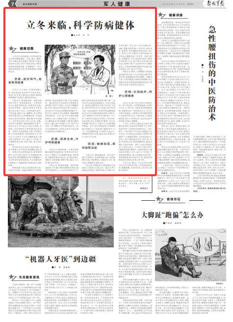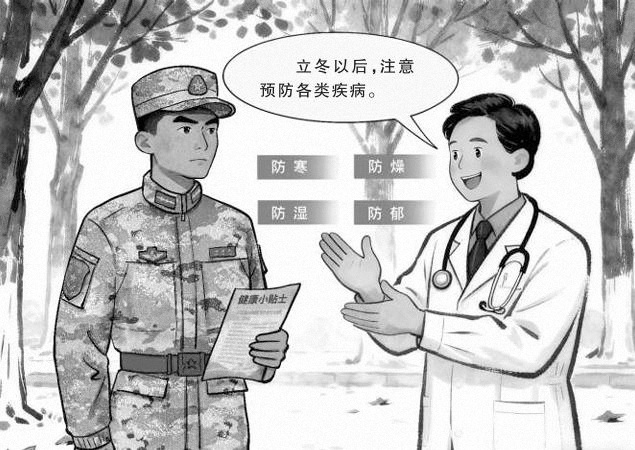 立冬后,天气寒冷,若寒邪侵袭人体,易伤及消化系统和关节肌肉系统。战友们在冬季可通过综合调理,增强身体抵御寒气的能力,避免疾病发生。