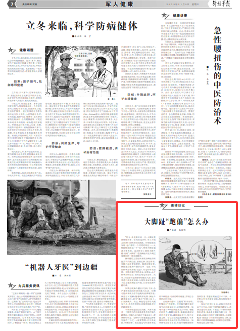 战友们在平时生活、训练中可注意以下几方面,有助于预防踇外翻发生:选择合适的作战靴,尽量在下午脚部最肿胀时试穿,确保最长脚趾与鞋头有一指距离;训练中可使用支撑型鞋垫,为双脚配备“减震器”;日常养成泡脚的习惯,泡脚后可轻柔按摩踇趾,以放松足底筋膜,维持足部力线平衡。