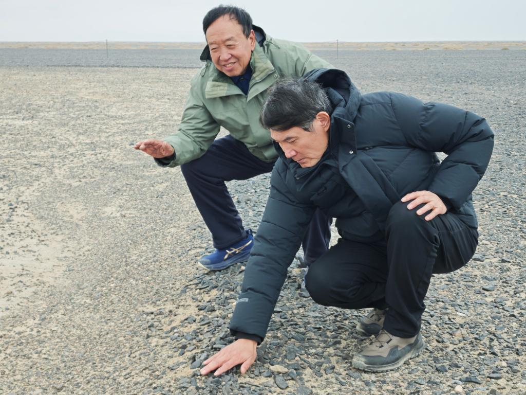 11月6日清早,卢建华、韩郑和陆遥再次回到地标旁。看到地标周围已有围栏保护,卢建华、韩郑欣慰地讲起从前。“几十年前,我们在这片空域训练,周末就带上水壶、馕来维护清理被风刮进字体里的小石子,这就是我们的来时路啊!”寒风中,韩郑红了眼眶,几度哽咽。