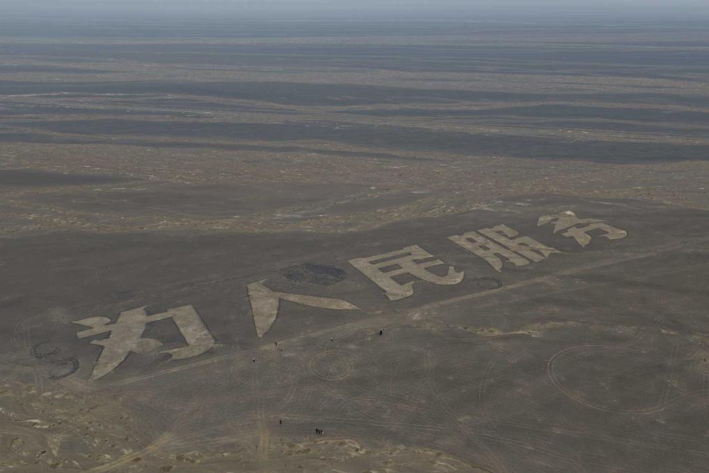 这些飞行地标,系中国人民解放军第八航空学校官兵于20世纪60年代在戈壁滩上刻画而成,用于飞行员训练时导航参照。彼时戈壁滩无任何地面参照物,飞行训练易出现串空域问题,严重威胁飞行安全。航校官兵们仅凭皮尺、铁锹、木板等简陋工具,刮除砾石层、露出浅色碱土,刻下“为人民服务”等5处巨幅飞行地标。