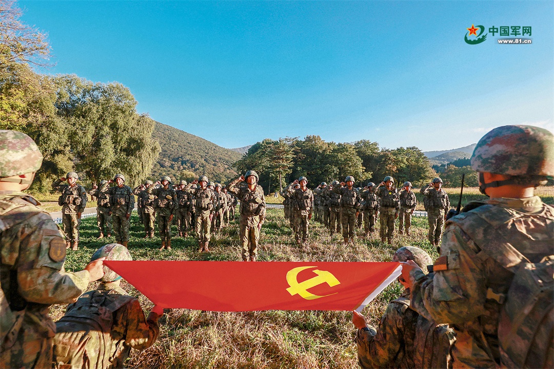 该旅在训练间隙组织官兵向党旗宣誓,激励官兵以昂扬斗志投身练兵备战。冯义桥 摄