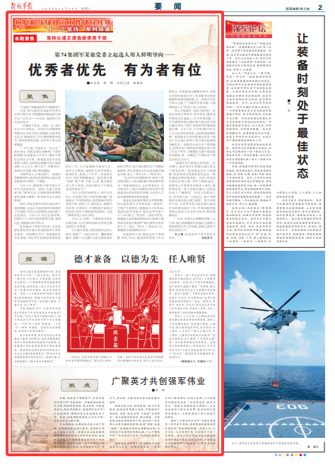 知人才能善任,考准才能用好。该旅在坚持定期考评、晋升考评、随机考评相结合的基础上,区分军事训练、工作实绩等类别定期采集干部信息并进行量化分析,为把干部选准用好提供数据支撑。今年7月,中央军委印发《关于大力弘扬优良传统、全面肃清流毒影响 重塑政治干部形象威信的若干规定》,对公道正派用人等方面立起铁规矩硬杠杠。该旅结合深入学习贯彻规定,把军队好干部标准贯彻落实到干部工作各个环节,不断健全完善干部选拔任用制度,进一步激发了干部队伍干事创业的活力动力。