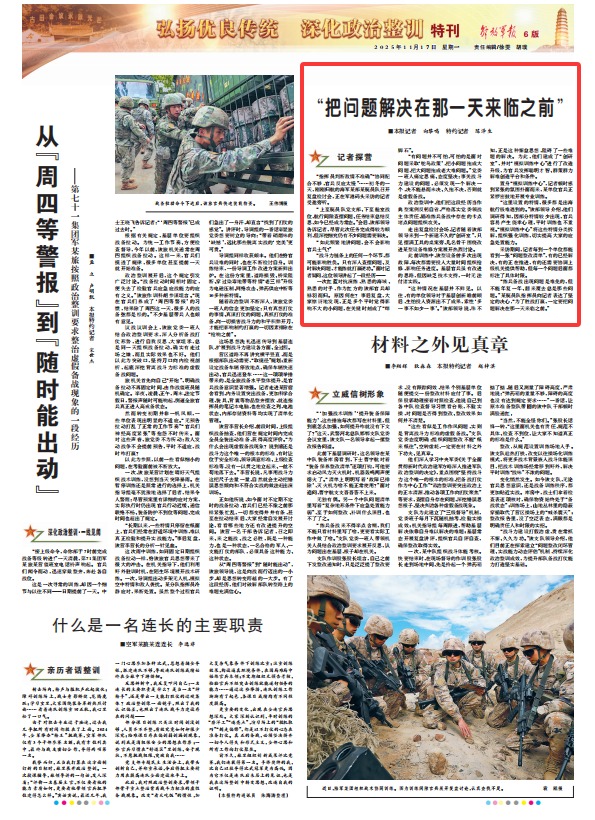 “战斗力链条上的任何一个环节,都可能影响胜负。只有深入查摆问题、及时解决问题,才能练就打赢硬功。”面对记者疑问,这位领导讲起了一段经历——