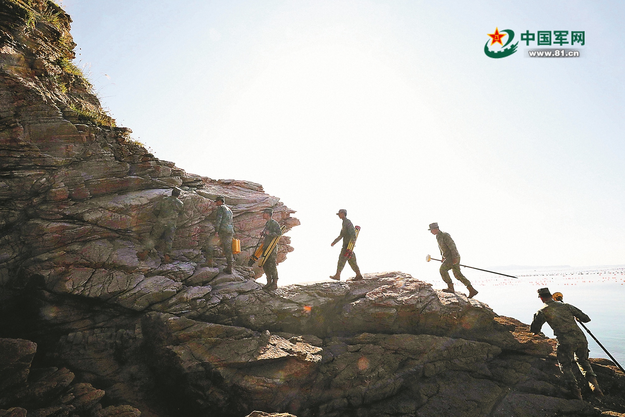 仔细端详海测兵的脸庞,会发现这群年轻官兵面色黝黑。由于常年在野外风吹日晒,他们也变得像礁石一般粗粝而坚硬。