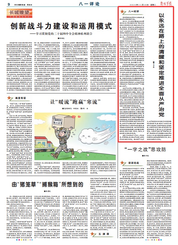 八一时评丨以永远在路上的清醒和坚定推进全面从严治党