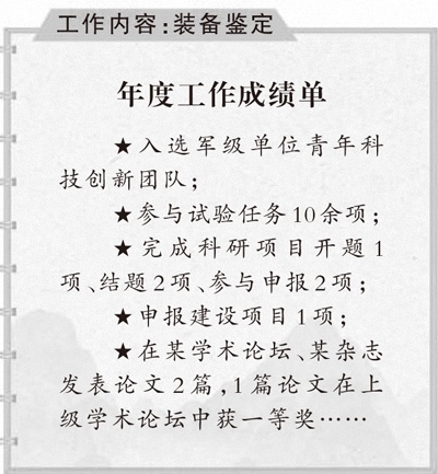 面对缺少应用经验的现实困境,我从基础做起,先后赴多地调研,搜集生产规范、设计方案、应用报告等技术文件20余份,查阅国内外专著、文献30余份,形成了专题调研报告,并设计出新的电压测试方法。为保证新方法准确有效,我进行模拟测试,经历了上百次“测试、修改”的循环……历时180余天,迭代后的方法通过了专家评审,成功应用于多型装备试验任务,课题论文也在某学术论坛发表,得到与会专家认可。