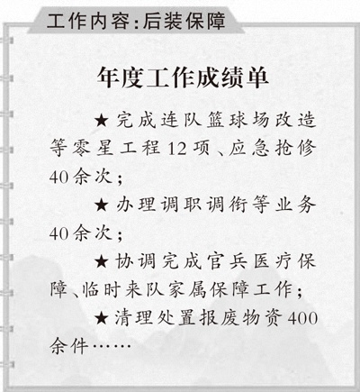 翻开我那边角磨损的笔记本,密密麻麻的字迹记录着我这一年为兵服务的点点滴滴。有人说,这些都是芝麻大的小事。但我觉得,小事也能体现机关对基层的关爱,正是在办好这些小事的过程中,我收获了很多认可和笑容。