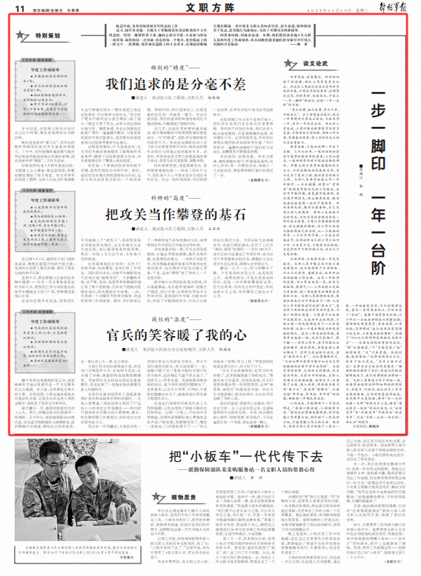 战位的温度,需要用心去感知,用行动去守护。合上这本旧笔记本,也意味着即将开启新的征程。未来,我会继续耐心倾听、细致观察、躬身践行,不仅走遍营区每一个角落,更走进每一颗心。
