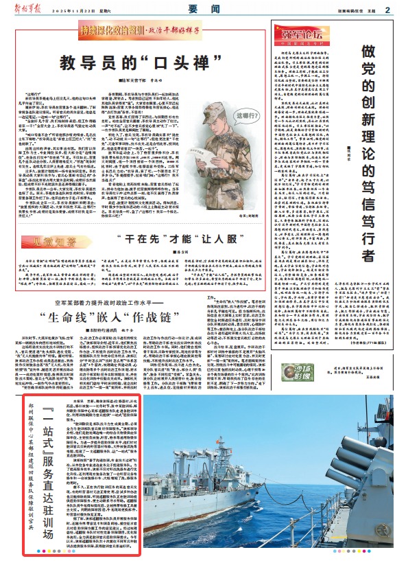 “驻训阶段是部队战斗力生成黄金期,必须全力为驻训部队官兵做好保障服务。”该部领导介绍,他们是驻地周边唯一的综合类物资供应保障单位,主要担负被装、野营、给养等通用物资保障任务。为进一步提升后勤保障水平,他们针对驻训官兵反映的野营器材维修、大件被装清洗等难题,组建了一支巡回服务队,让“一站式”服务直达驻训场。