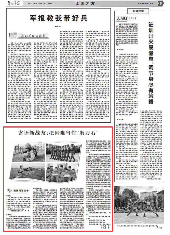 寄语新战友:把困难当作“磨刀石”