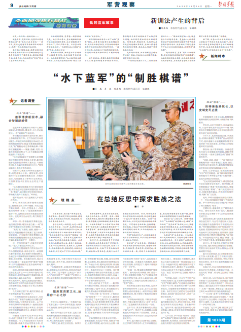 “题库手册是‘蓝军’团队心血的凝聚,是我们锤炼过硬艇员的‘制胜棋谱’。从航线规划到兵力调度、从进攻战术到反攻战法等内容,多数战场态势的应对方法都可以在其中找到思路。”郑伟说。