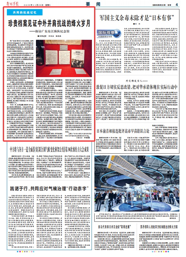 今年是中国人民抗日战争暨世界反法西斯战争胜利80周年,历史铭刻着中外人民在世界反法西斯战争中凝结的深情厚谊。纪念馆内,一组组文物向世人无声诉说着中外携手抗战的历史记忆。王红星说,纪念馆有责任以展览活动为纽带,将这些故事讲给更多人听,推动中外友好交流合作,筑牢和平发展的共同信念。