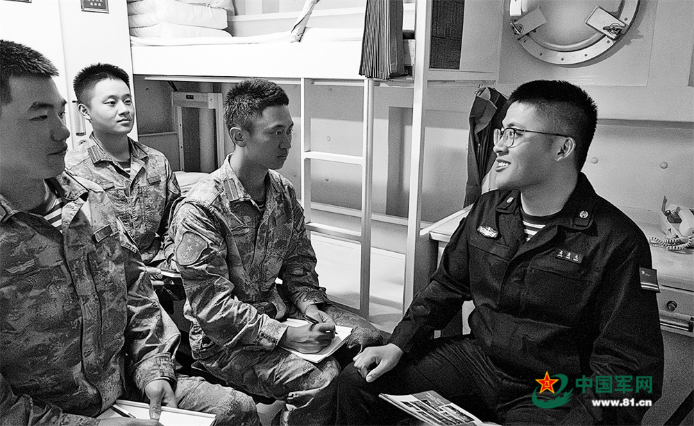 第一次夜间值更,令王运扬难忘。凌晨2点,夜幕笼罩着波涛涌动的大海。进入驾驶室后,王运扬在舰员引导下,借着仪表盘发出的微弱绿光,开始练习观测判断海面情况。