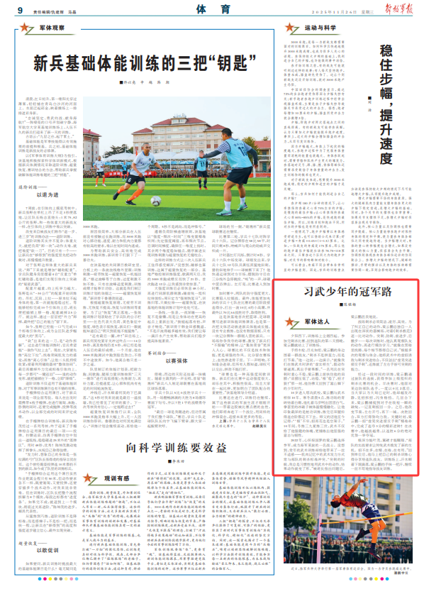 手持木枪,目光如炬,梁云鹏的身边围着一群战友。“刺杀不是拼蛮力,而是打节奏。”他一边说,一边演示,“就像我们在练武术时讲的‘虚实相生’,假动作要逼真,真出手要果断。”一名列兵在突刺时重心不稳,梁云鹏上前扶住他的肩膀:“肩膀压低了,站稳。‘根’稳了,招才狠!”那一刻,他仿佛又回到了嵩山脚下的少年时代。