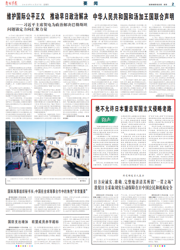 历史早已证明,日本军国主义的野心一旦失控,必将给亚洲邻国带来严重威胁。高市的涉台言论,与当年日本军国主义以“生命线”“存亡危机”为借口发动侵略战争的逻辑如出一辙,但当今世界绝不允许日本右翼势力开历史倒车,绝不允许日本军国主义死灰复燃。