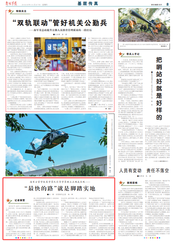 “学员正处于成长成才的关键时期,必须引导他们树立正确的成长观、学习观。”队务会上,景队长没有直接批评,而是摆出这些现象,引导学员主动思考,“大家都渴望快速成长,这种想法值得鼓励。但不积跬步,无以至千里。没有哪棵参天大树是一夜之间长成的,通向成功的路也没有捷径,需要脚踏实地一步一步向前走。”