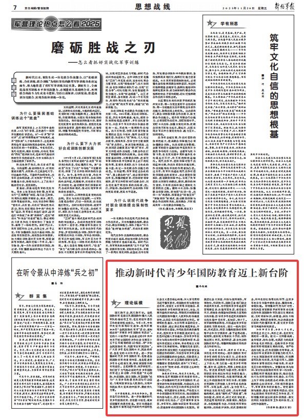 理论纵横丨推动新时代青少年国防教育迈上新台阶