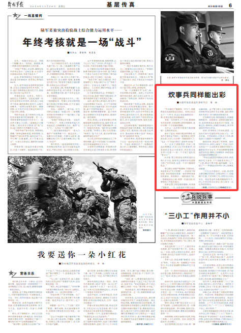 “听说这道菜是你摸索出来的,真是既好吃又营养,下午训练更有劲儿了”“小雷,最近干得不错,越来越像一名大厨了”……听着战友的评价,我心里满是成就感。