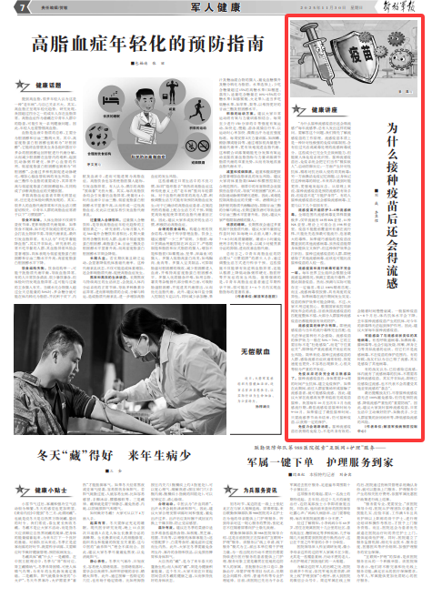 最后提醒战友们,尽管接种流感疫苗无法100%避免感染,但仍是预防流感、降低流感严重性的“重要防线”。因此,建议大家及时接种流感疫苗,日常生活中主动做好防护,如勤洗手、少去人群密集的封闭场所等,降低感染流感的风险。