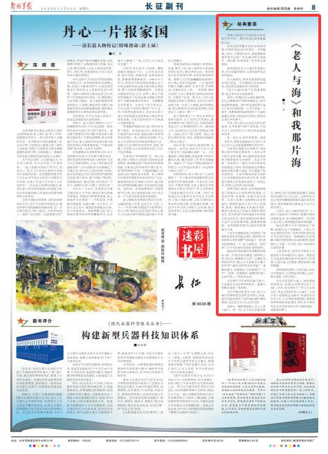 我初上军舰时对大海充满恐惧,经历过晕船呕吐等种种磨炼后,我开始逐渐熟悉海。我们所巡逻的那片海与小说中的海很像。从书中的每一个细节,我都能领悟海明威笔下大海的波谲云诡和人物战胜自然的心理变化以及抗争的勇气。