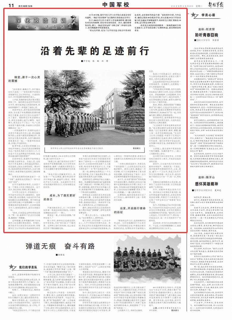 台下,800余名卫生专业军士学员凝神聆听,眼中既有对历史的敬仰,更有对未来的思索。次日,他们将整装出发,踏上一场意义深远的“寻根之旅”,奔赴红色热土,接受现地教学的思想洗礼。