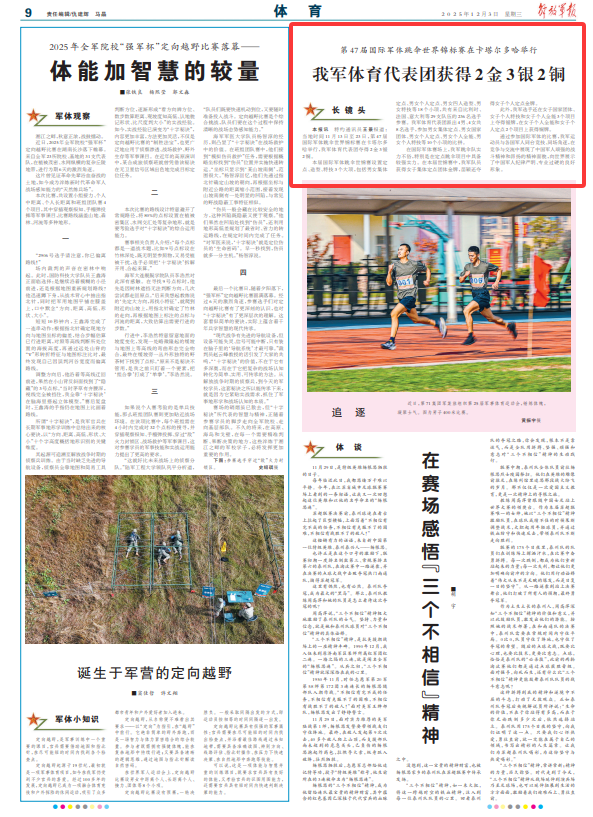此外,我军选手还在女子国家团体、女子个人特技和女子个人全能3个项目上夺得银牌,在女子个人全能和女子个人定点2个项目上获得铜牌。